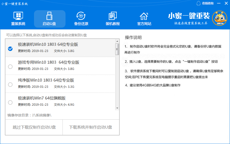 选择要下载的系统,U盘制作完成后会自动下载并复制到U盘中,方便装机,如果选择跳过,需要自己准备系统镜像并复制到U盘中。